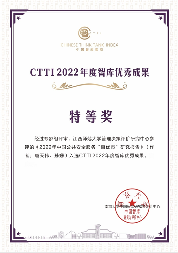 “CTTI来源智库”是中国目前最权威、最广泛的智库索引目录,涵盖内地高等院校、党政军系统、科研院所、社科院、媒体、社会及企业各界具有代表性的重要智库。2017年,我校“江西师范大学管理决策评价研究中心”被增选为“CTTI来源智库”;2019年-2022年,研究中心继续被遴选为“CTTI来源智库”;“苏区振兴研究院”“江西师范大学管理决策评价研究中心”“中国社会转型研究协同创新中心”被评为全国高校智库前100强。